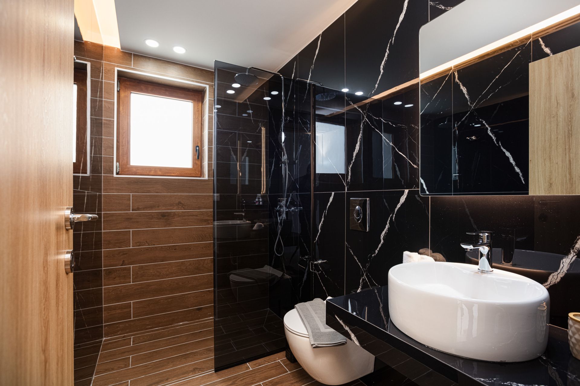 Η διακόσμηση είναι μοντέρνα και διακριτική, με μοναδικό κρυφό φωτισμό που δημιουργεί μια ζεστή ατμόσφαιρα. Κάθε δωμάτιο είναι εξοπλισμένο με air-condition και μικρή τηλεόραση, προσφέροντας όλες τις ανέσεις για μια άνετη διαμονή.