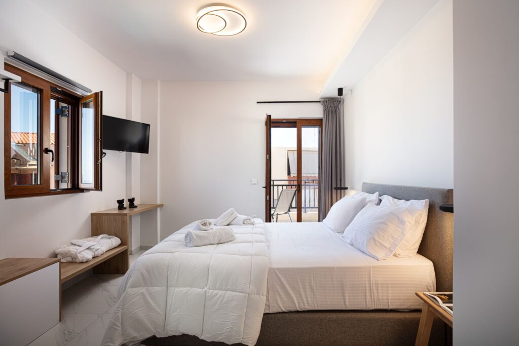 Κάθε υπνοδωμάτιο της PROVILLAS είναι ένας άνετος και προσεγμένος χώρος, ιδανικός για ξεκούραση και χαλάρωση. Διαθέτει διπλό κρεβάτι με ανατομικό στρώμα υψηλής ποιότητας, ιδιωτικό μπάνιο εντός του δωματίου και πρόσβαση σε ιδιωτικό μπαλκόνι για να απολαμβάνετε τον καθαρό αέρα και τη θέα.